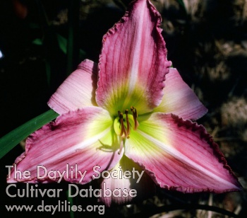 | Description : lavender rose blend with cream edge and chartreuse throat | |