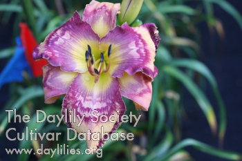 Description : Cream amber petals and sepals, amethyst, cream, pale violet and gray patterned eyezone, small picotee edge on the petals, green throat, easily fertile both ways.