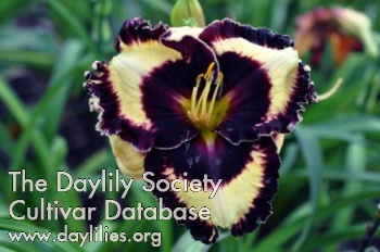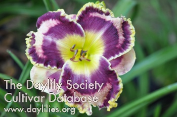 | Description : very light lilac with large eyezone of plum purple large green throat double edge of plum purple and yellow | |