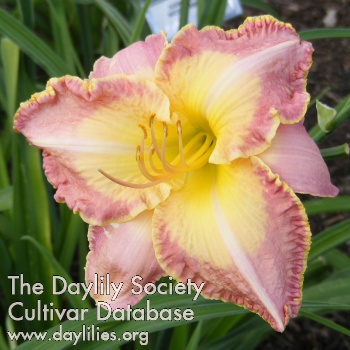 | Description : deep fuchsia with large watermark and gold wire edge | |