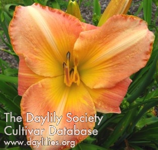 | Description : clear fresh pink with darker edges and green yellow throat | |
