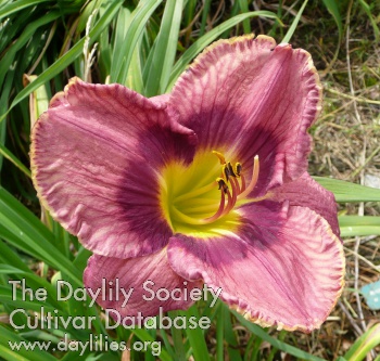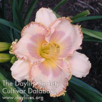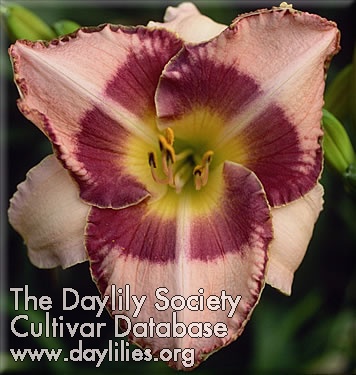 Description : cream pink with purple eye and edge above green throat