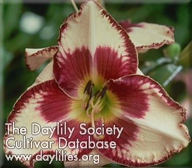 | Description : light lavender with purple eye and white yellow tooth edge above green throat | |